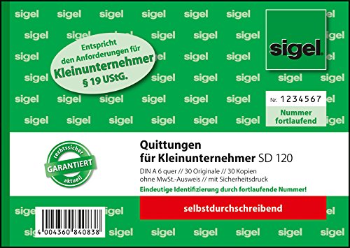 Sigel SD120 Quittungsblock für Kleinunternehmer A6 quer, 2x30 Blatt, selbstdurchschreibend