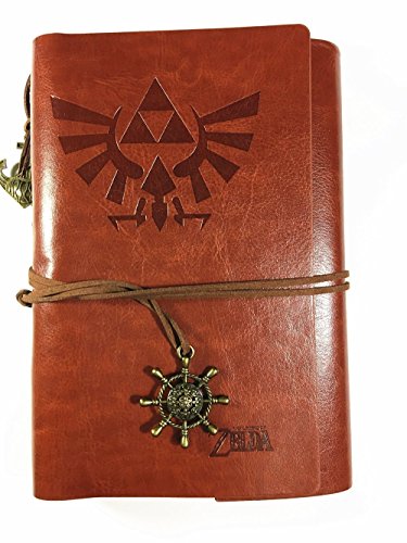 Leder-Tagebuch, Hyrule Emblem Notizbuch, nachfüllbar, Spirale,zelda täglicher Notizblock, klassisch, geprägt, Reise-Tagebuch, Kartenhalter,Aufbewahrungsbeutel mit blanko Seiten und Retro-Anhängern