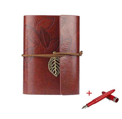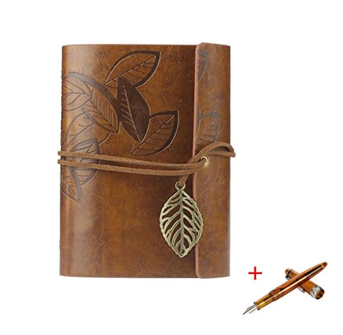 Ukamshop retro Blatt Lederbezug Buch leeres Notizbuch Zeitschrift Tagebuch Journalbuch Tagebuch braun