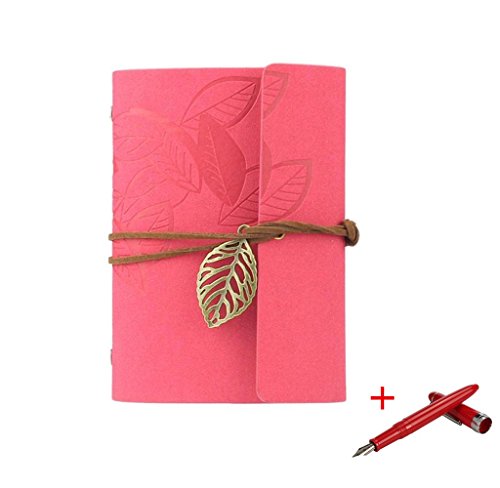 Ukamshop retro Blatt Lederbezug Buch leeres Notizbuch Zeitschrift Tagebuch Journalbuch Tagebuch hot pink
