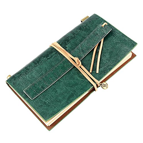 IntiPal Handgemachtes Lederbuch Kladde Tagebuch Reisetagebuch Notizbuch Heft Notiz Lesezeichen (Grün)