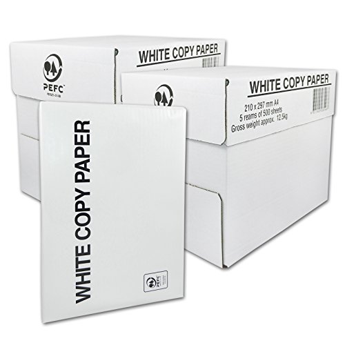Kopierpapier Druckerpapier Papier, A4, 80g/m² für Laserdrucker, Tintenstrahldrucker, 2500 Seiten Blatt, weiß