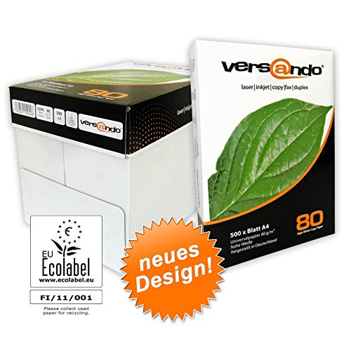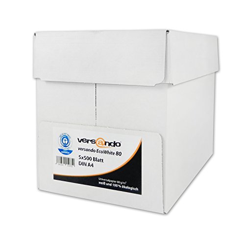 2500 Blatt Papier versando EcoWhite 80 A4 80g Öko-Weiß Kopierpapier Druckerpapier Laserpapier Faxpapier Duplex Umweltpapier