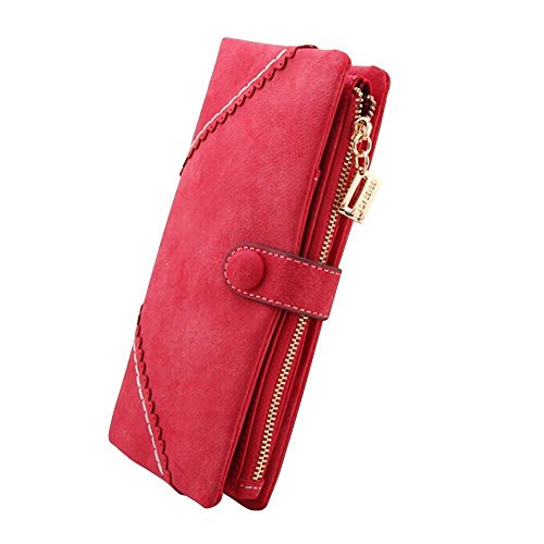 Cozyswan Mode Leder Geldbörse Geldbeutel mit Knopf Damen Lange Damenhandtasche Portemonnaie - Rot